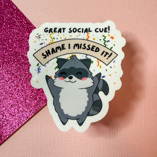 Great Social Cue! Shame I Missed It β Neurodivergent Raccoon Sticker
