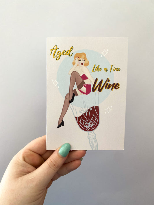 Aged Like A Fine Wine Retro Pinup | Handmade Birthday Card