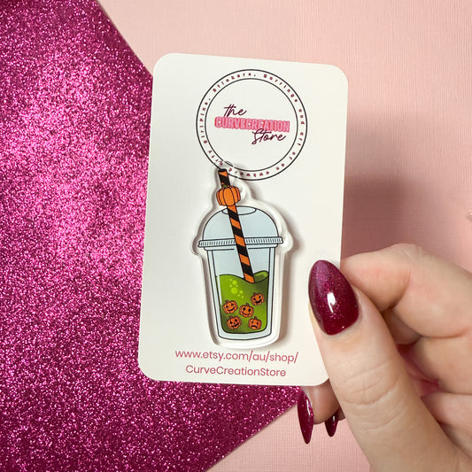 Jack-O-Lantern Spooky Bubble Tea Acrylic Pin