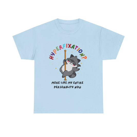 Hyperfixation Pole Dancing Raccoon T-Shirt - Multiple Colours