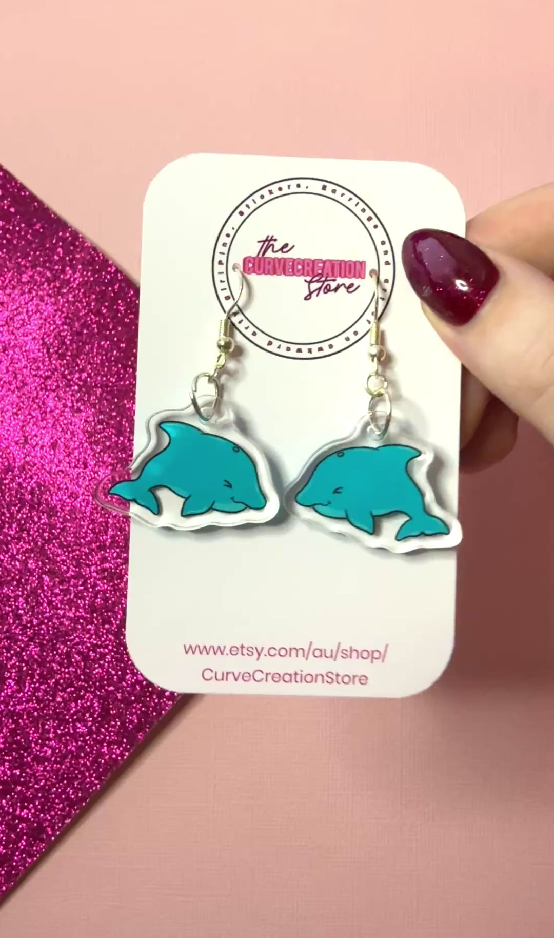 These standard-size dolphin earrings feature your cheerful chibi bottlenose design, ready to splash some fun into your day. Dangling from hypoallergenic French hooks, theyβre perfect for marine animal lovers and sea dreamers alike.