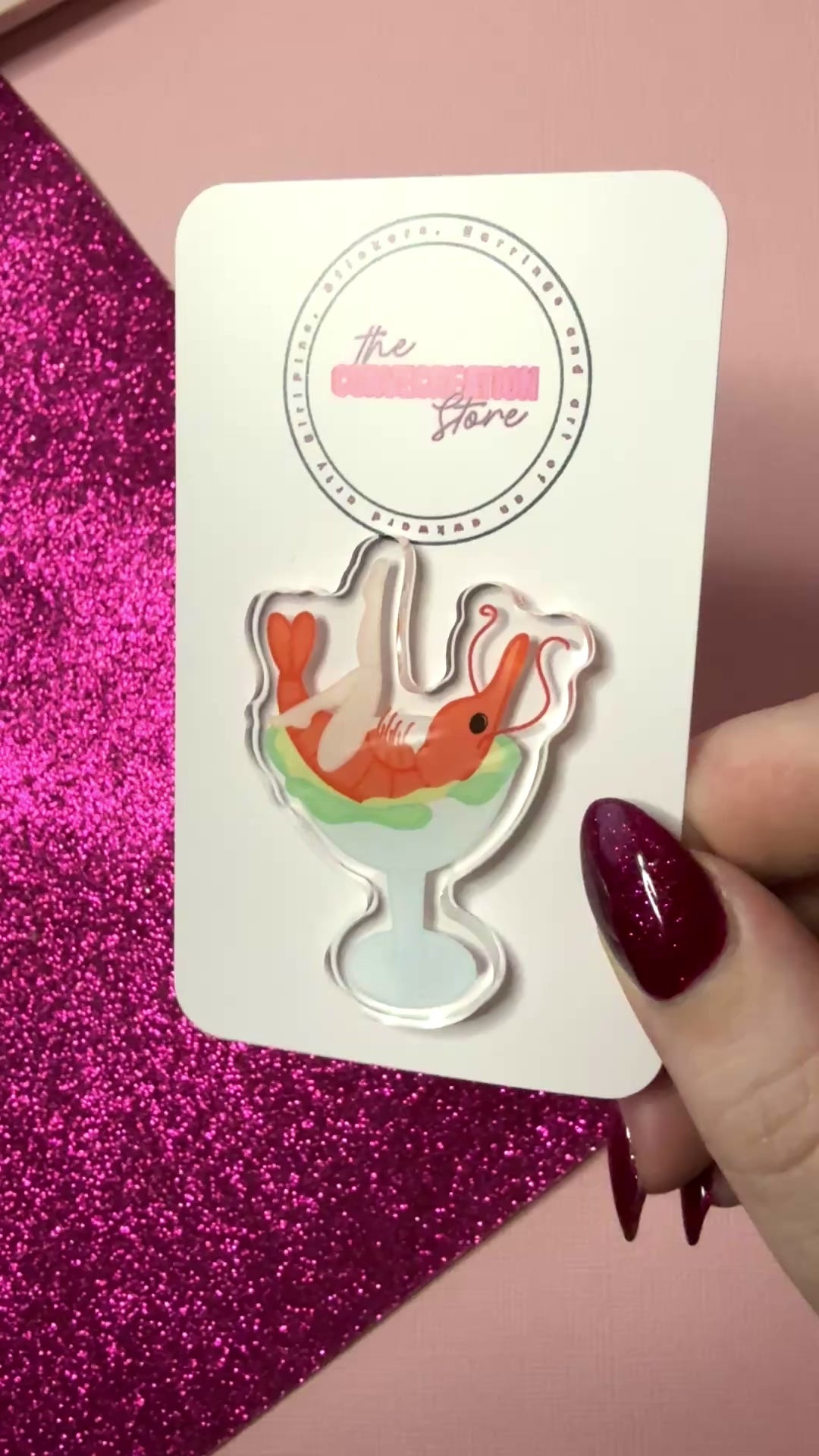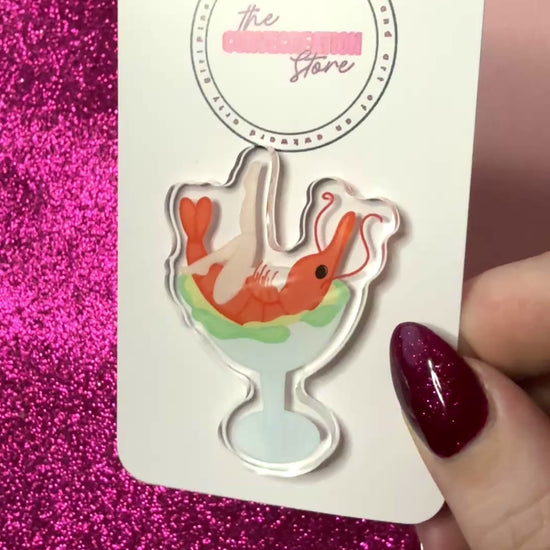 This fabulous little prawn is here to steal the spotlight β perched in a martini glass, flaunting long legs and burlesque energy in every curve. Itβs a playful nod to classic cocktail kitsch and showgirl sparkle.