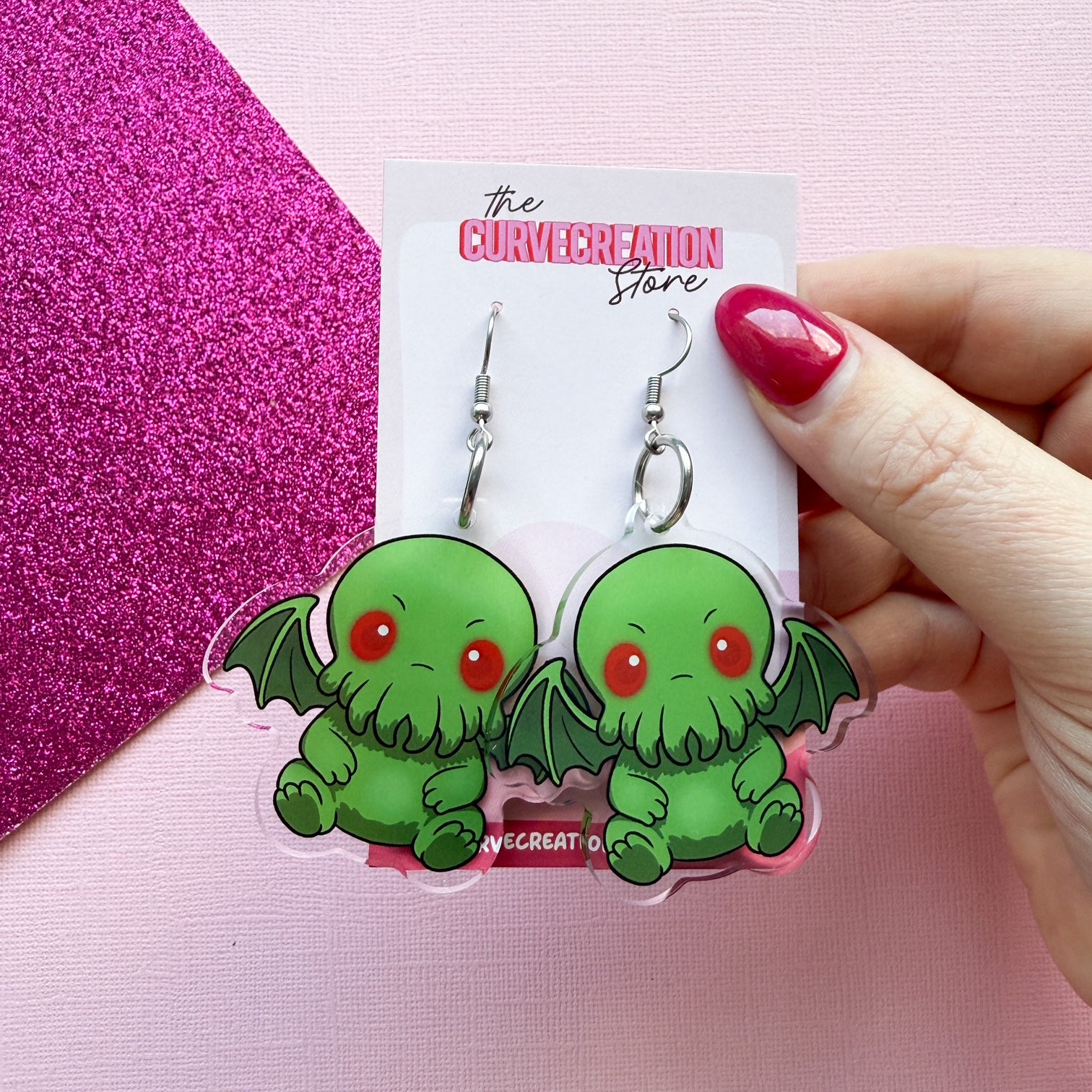 Let your style go cosmic with my Chibi Cthulhu Acrylic Charm Earrings! Lightweight and delightfully spooky, they’re perfect for adding a quirky, otherworldly touch to any outfit.