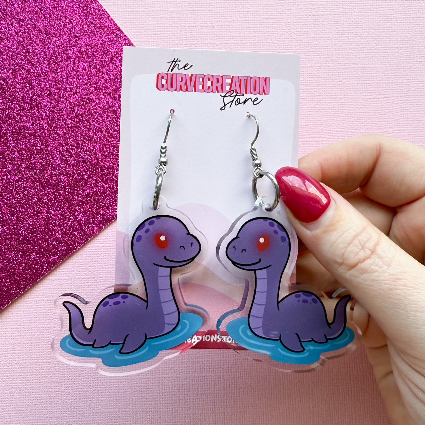 Show off your cryptid style with my Chibi Loch Ness Monster Acrylic Charm Earrings!