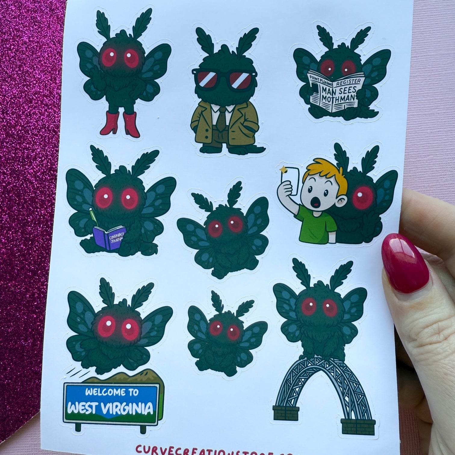 Get ready for a whole flock of cryptid cuteness with my Mothman Sticker Sheet! Featuring multiple chibi Mothman designs — from sitting reading to striking poses — this sheet is perfect for journals, planners, water bottles, or any space that needs a touch of mystery.