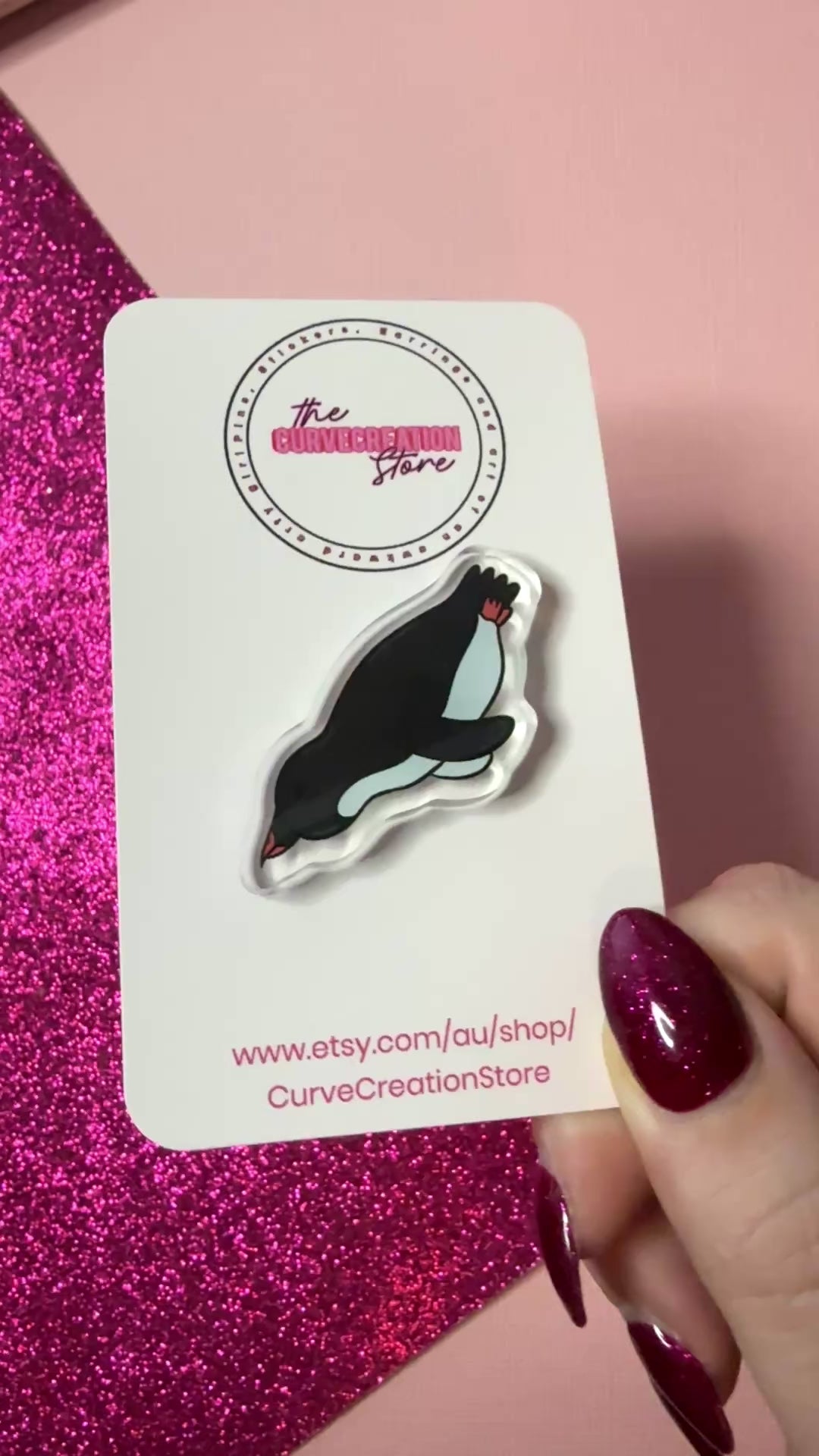 These are printed clear acrylic pins, with acrylic on both sides to protect the image with a pink rubber heart back/stopper.