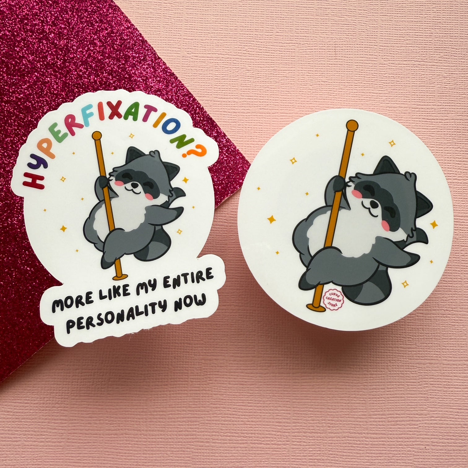 Pole Dancing Hyper fixation Neurodivergent Raccoon Sticker