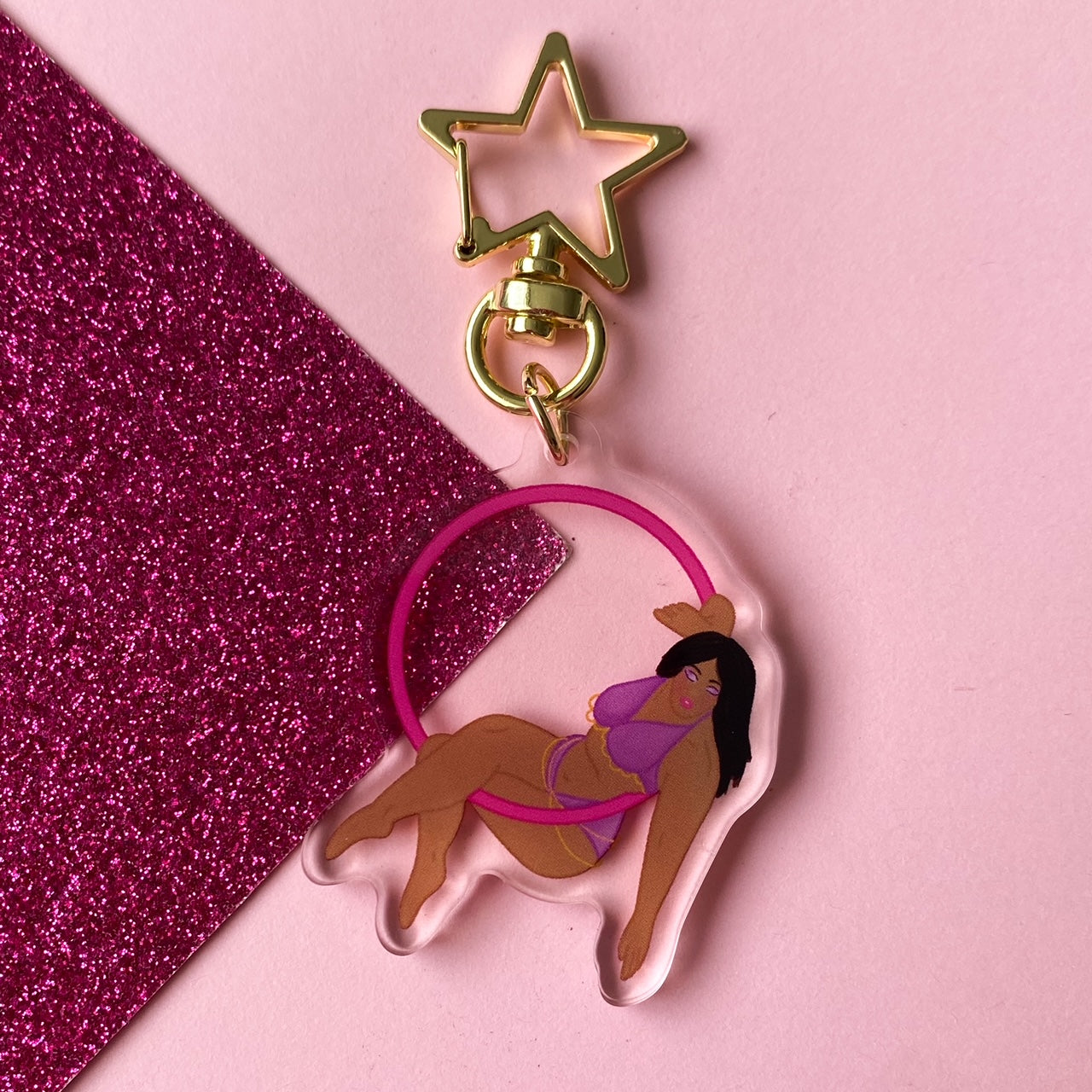 Hey there, fabulous! Check out my amazing Cradle Aerial Hoop Keychain featuring a fuller-figured dancer performing the stunning cradle move! As a passionate aerialist myself, I wanted to create something that captures the elegance and grace of the art we all adore. With pink costumes and beautiful curves, this keychain is all about celebrating your unique style and fierce personality. Its also available in 3 different skin tones. Attach it to your keys, bag, or anywhere you want to add a touch of sass and glam. Let's show the world our love for aerial hoop dancing and let our inner divas shine with every move!