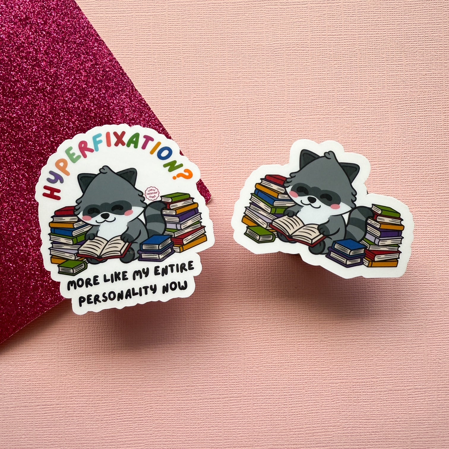 Reading Hyper fixation Neurodivergent Raccoon Sticker