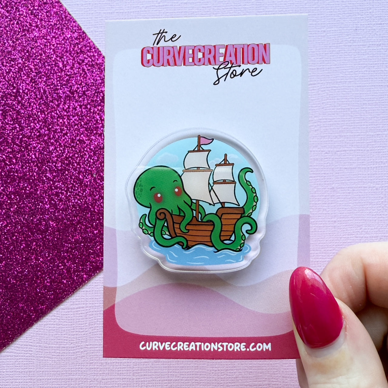 Sail into legend with my Chibi Kraken Acrylic Pin! This adorable deep-sea giant is ready to wrap itself around your outfit.