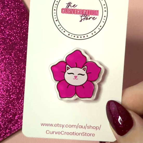 Whitney the White Cat Bloom Feline Flower Acrylic pin